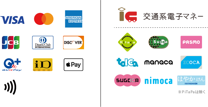 また、各種クレジットカード・電子マネー決済にも対応しております。