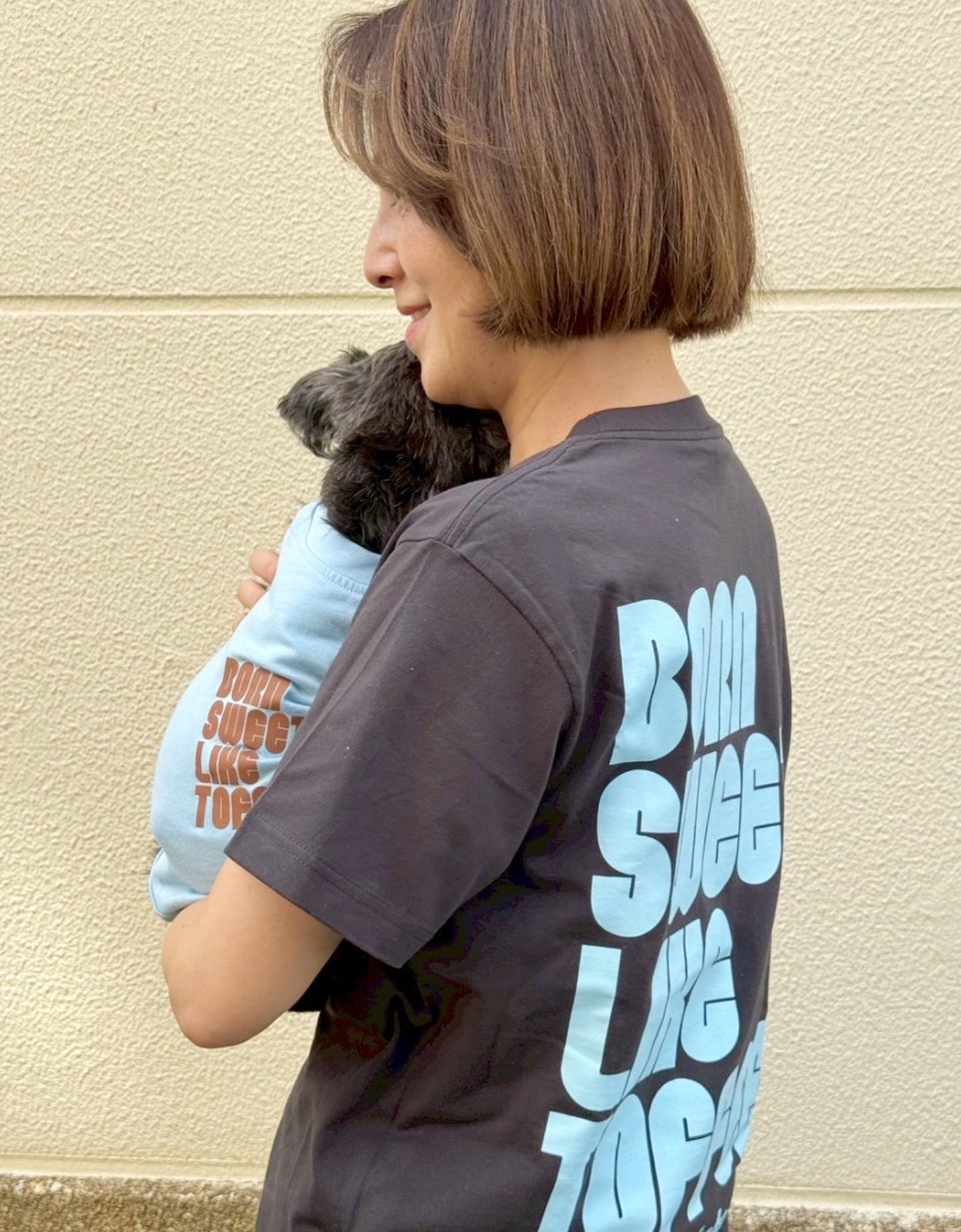 カフェのコンセプトがプリントされたTシャツや、わんこ用のバンダナ、キャップ、トートバッグなどを展開中。